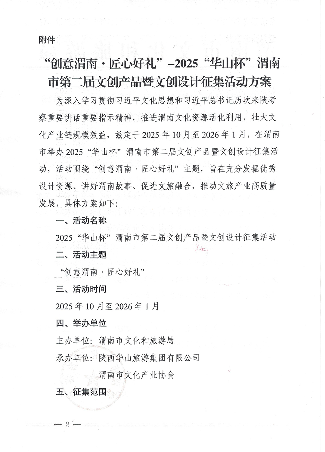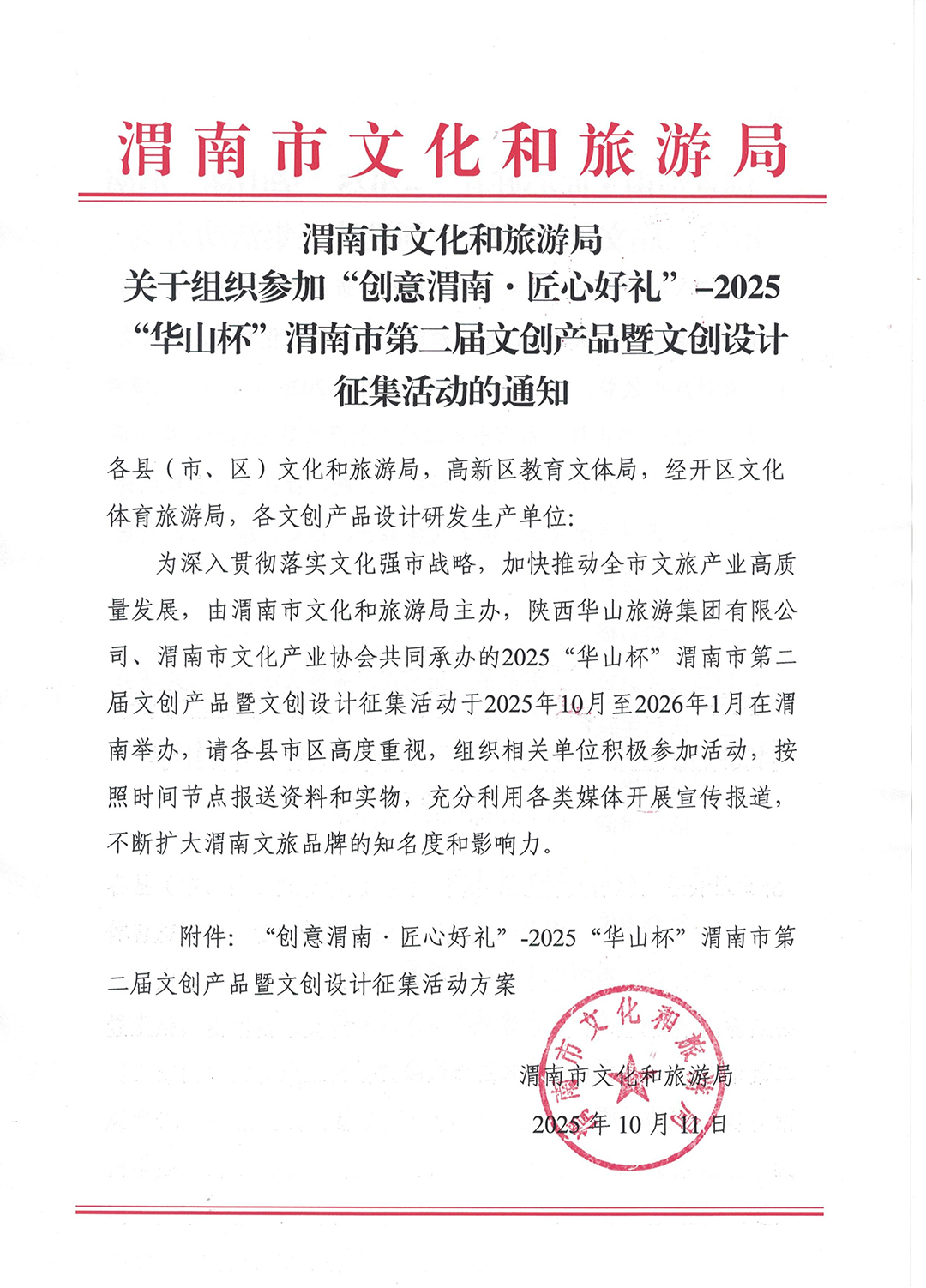 渭南市文化和旅游局 关于组织参加“创意渭南 · 匠心好礼”-2025 “华山杯”渭南市第二届文创产品暨文创设计 征集活动的通知